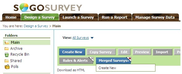 Merged Surveys gives you the power to merge and combine two or more surveys into one completely new survey.