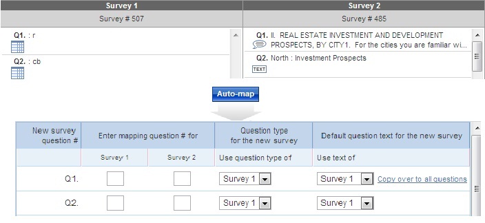(a)If the surveys are identical; i.e., if they contain the same set of questions with the same text, then they will be auto-mapped to one another, after which you can directly import responses into the survey.