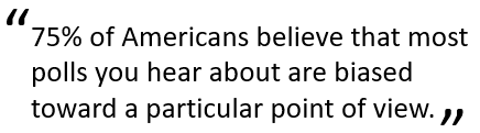 This got me thinking about surveys and how the answers we expect are not always the results we get. And that’s okay — as long as the survey itself is valid. Simply put, survey validity means you’re asking the right questions to measure what you’re supposed to be measuring. Seems obvious, right? However, it’s easier than you think for bias to sneak into the design of your survey. Even the perception that the survey isn’t valid can make it hard for the public to believe your results. In fact, according to Kanta, a data investment management organization, 75% of Americans believe “most polls you hear about are biased toward a particular point of view,” while only 19 percent think they are unbiased.