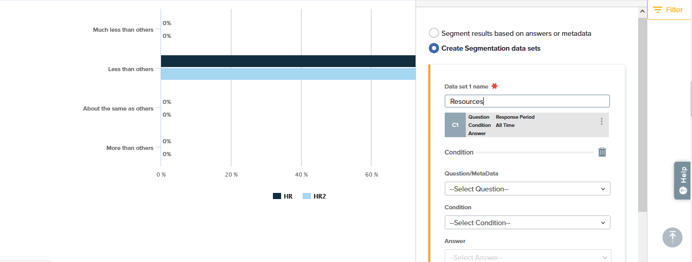 - Choose to segment results based on answers or metadata elements or to create segmentation data sets.