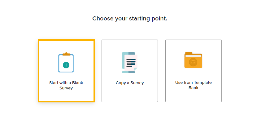 - You have other options, but in this case, create your form by using ‘Start with a Blank Survey’.