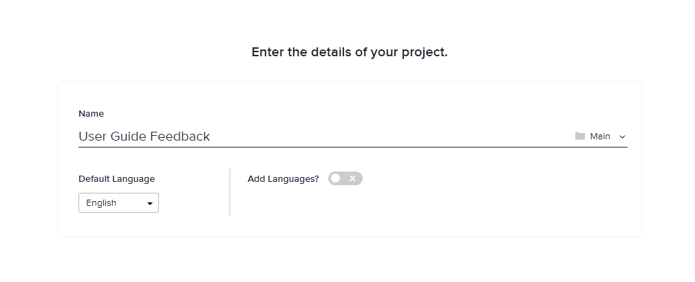 - Add Languages: Allows you to create project in multiple languages other than the primary language selected. This is optional and can be set/modified anytime from Options under the Design tab.