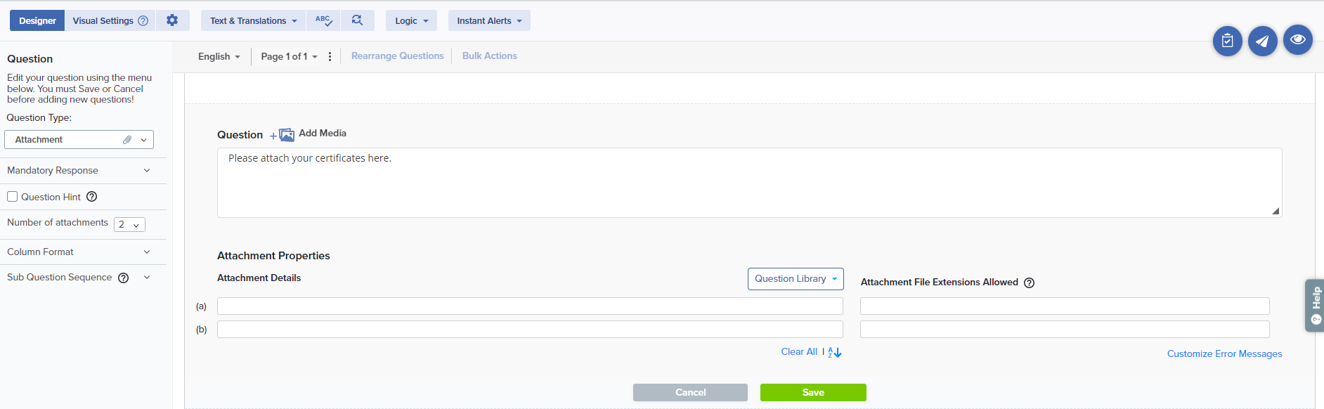 - Default Language: This is the language in which your form will be created. The primary language cannot be changed after questions are added to the form.