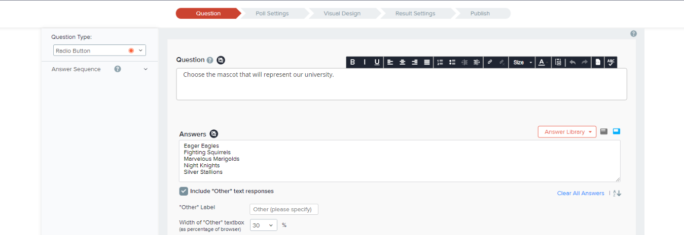 - You can set colors, add a Poll logo, and select font settings for the Poll. This customization can be done through a wide variety of options provided by the system.