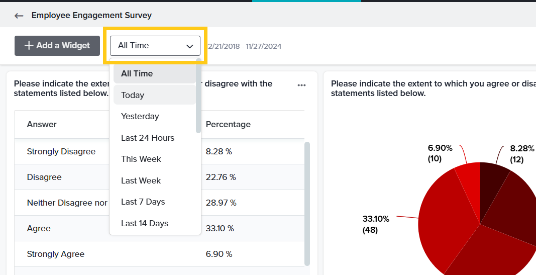 - All Time: Shows all data beginning from the date the first response was received, up to and including the current date.