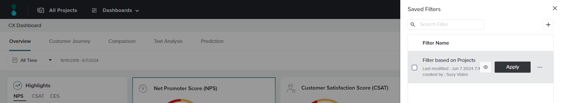 - Projects: Analyze your data based on specific CX projects rather than all CX projects.
