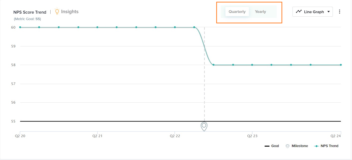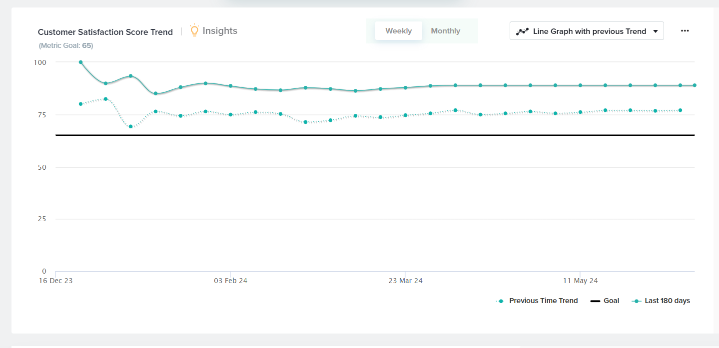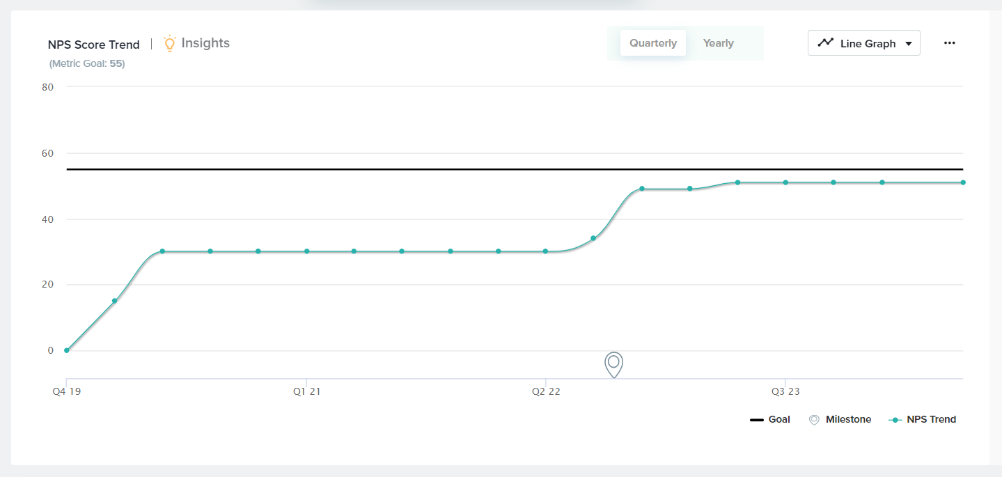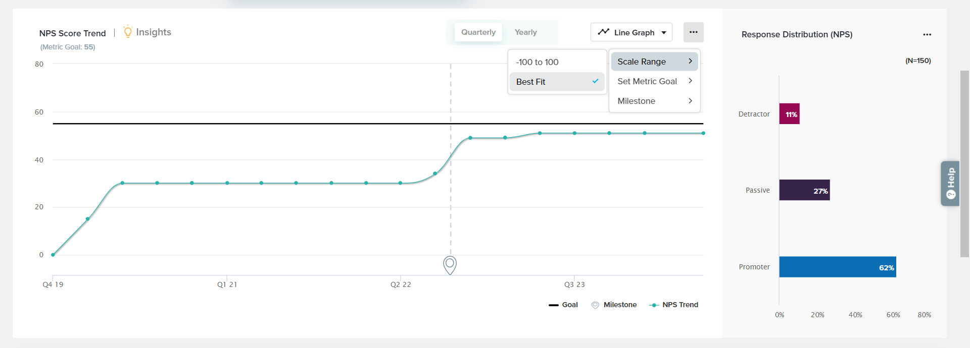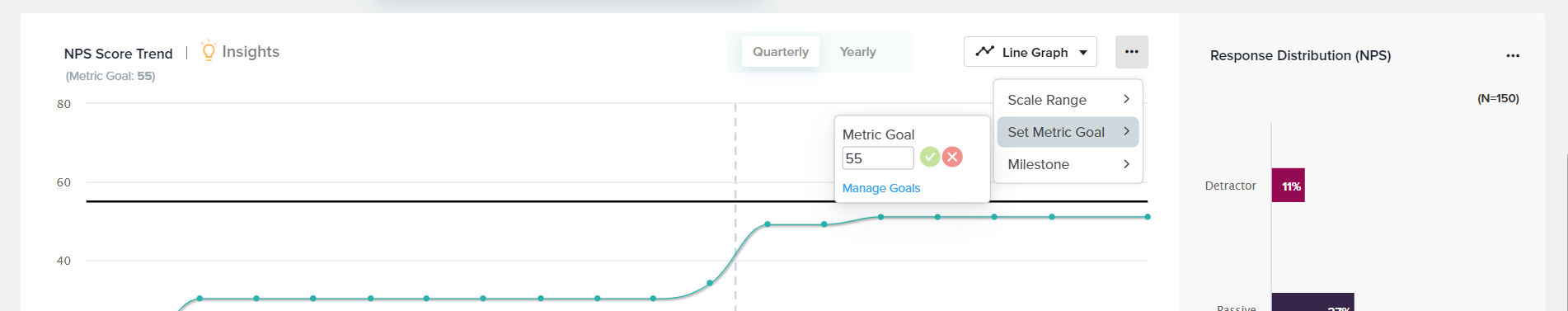 - Goal: Choose to display a goal to easily review how close you are to your target score. To set a Goal, click on the three-dot menu, Set Metric Goal, and enter your goal value.