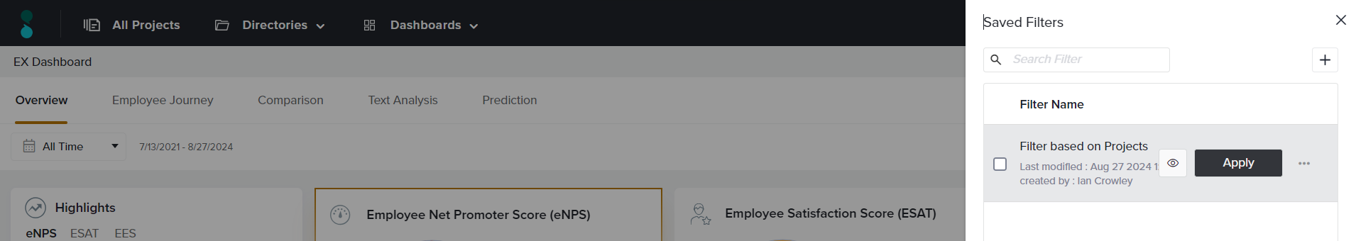 - Projects: Analyze your data based on specific EX projects rather than all EX projects.