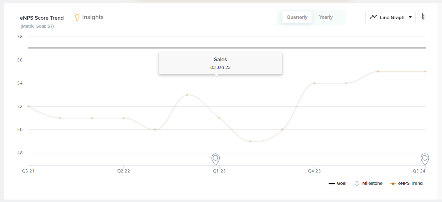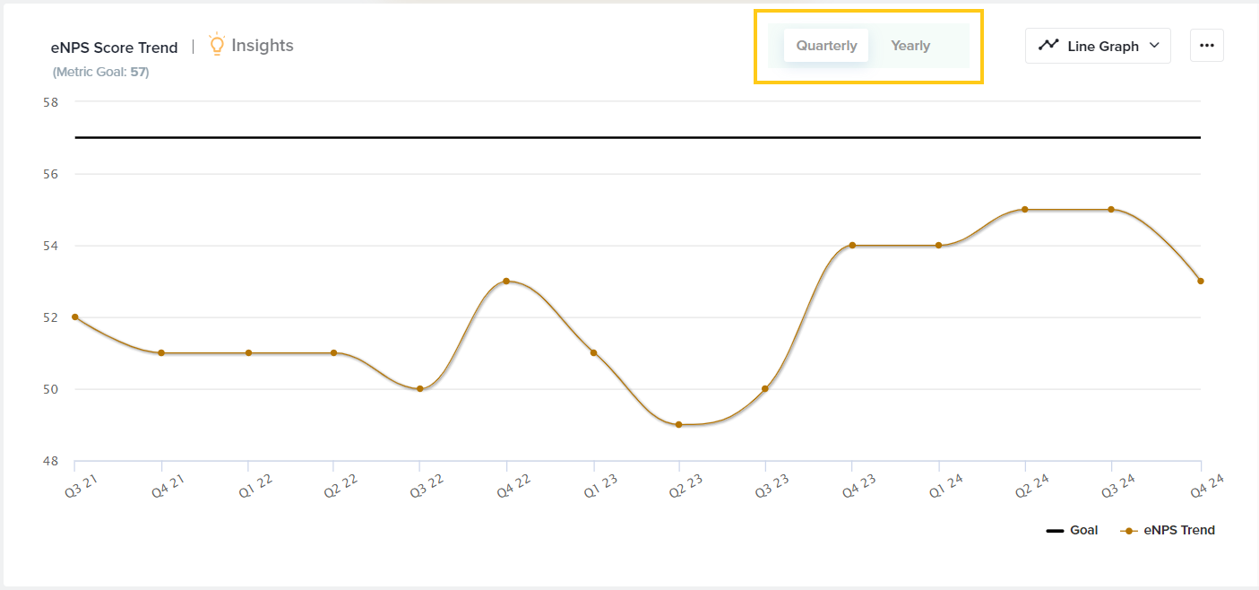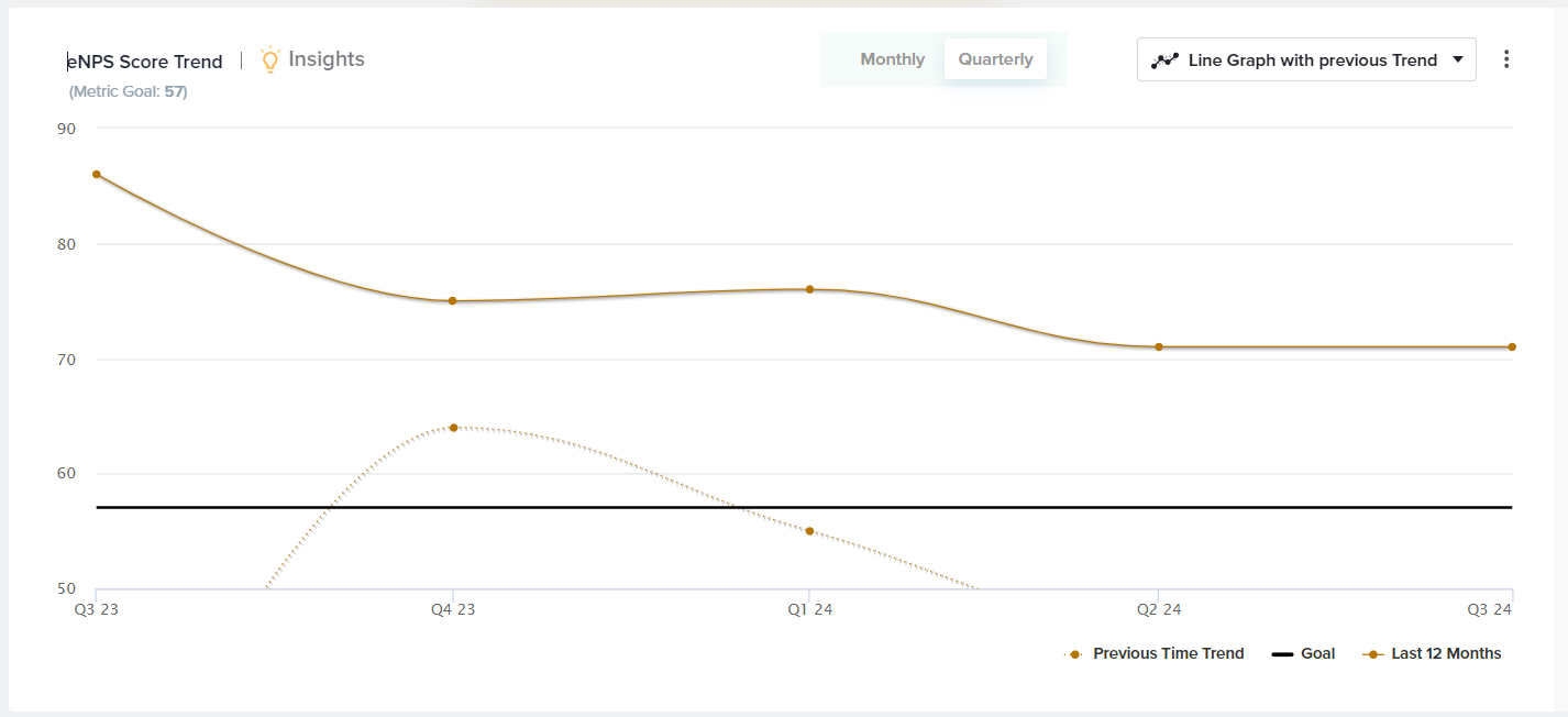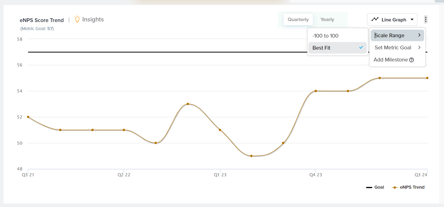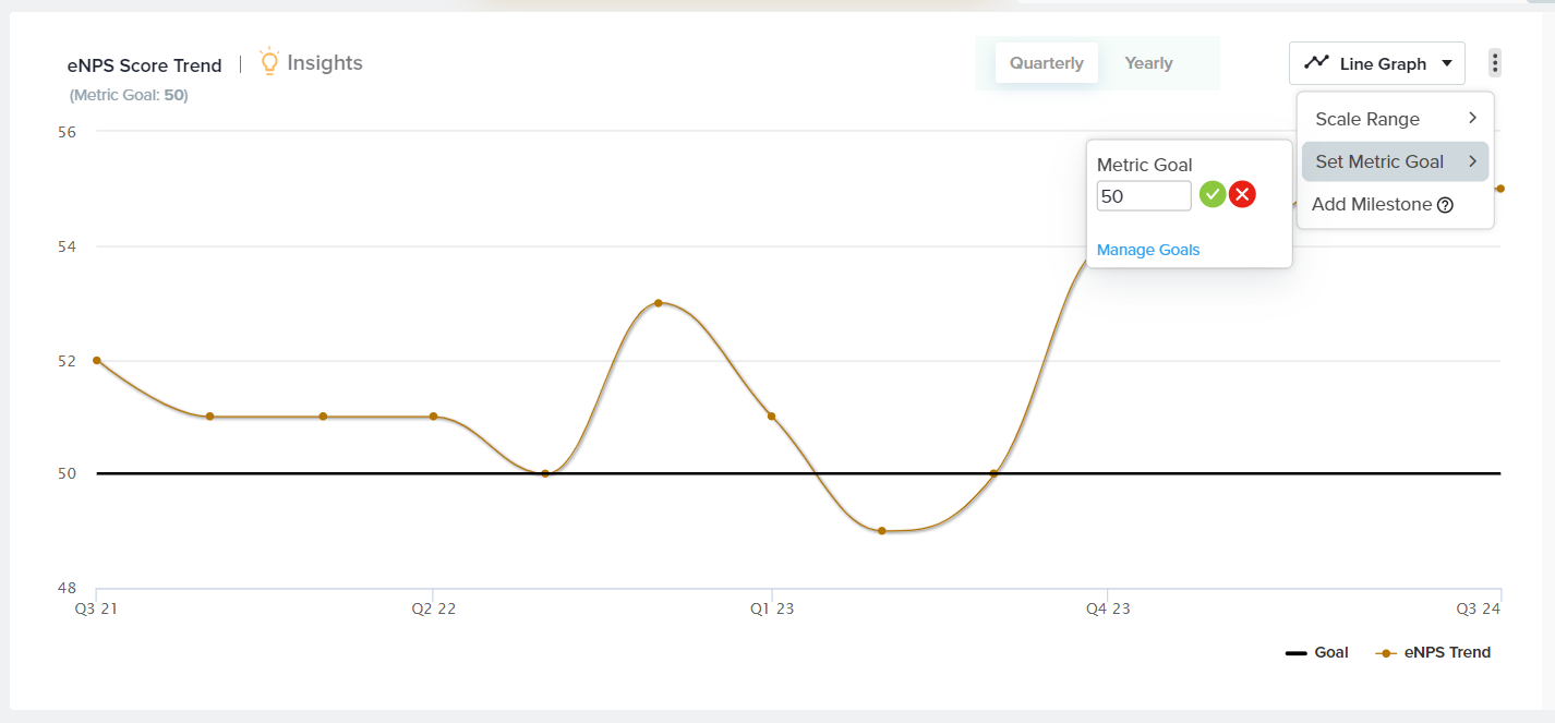 - Goal: Choose to display a goal to easily review how close you are to your target score. To set a Goal, click on the three-dot menu, Set Metric Goal, and enter your goal value.