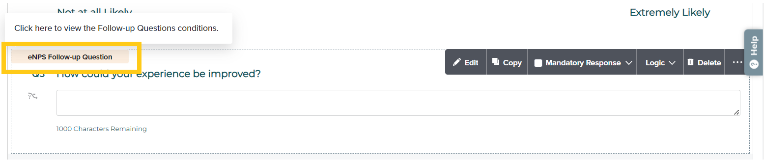 To modify the saved conditions of follow-up questions, click on the label added to your question or open Question Display Logic under Logic in the Design menu bar.