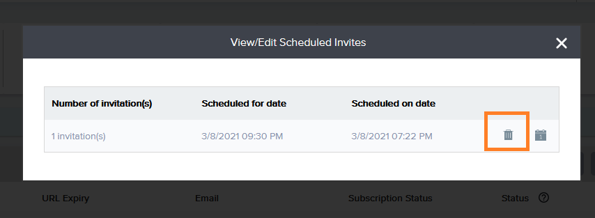 - On the card click delete icon next to the batch of invite you’d want to cancel.
