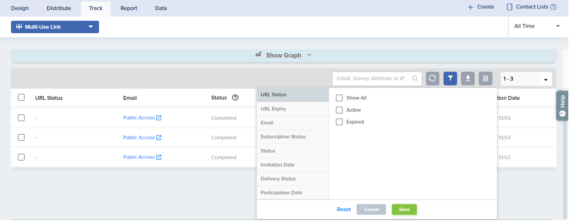 - If you have used a Shareable URL, Track will display data as soon as your first response comes in.
