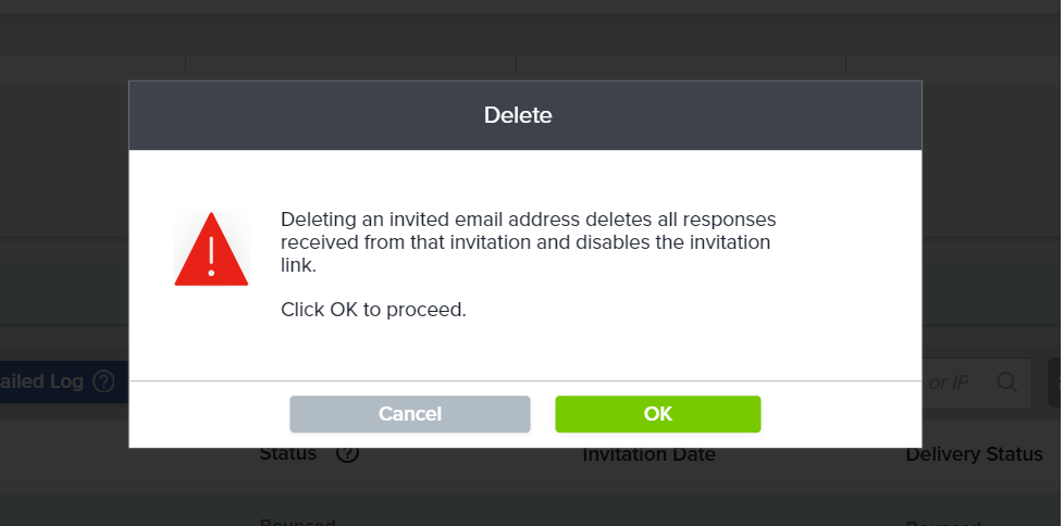 Reminder: Deleted invitations and their responses cannot be retrieved. If you delete an invitation that has already been completed, the data from that response will be lost.