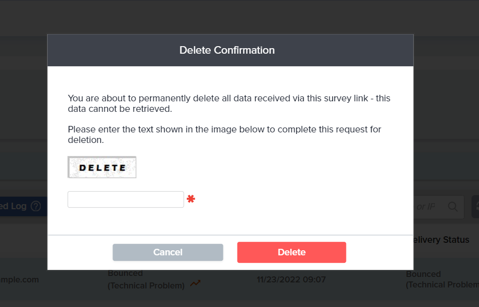 - Select all email addresses and click Delete. All selected invitations and their responses will be deleted. Note: This action cannot be undone.