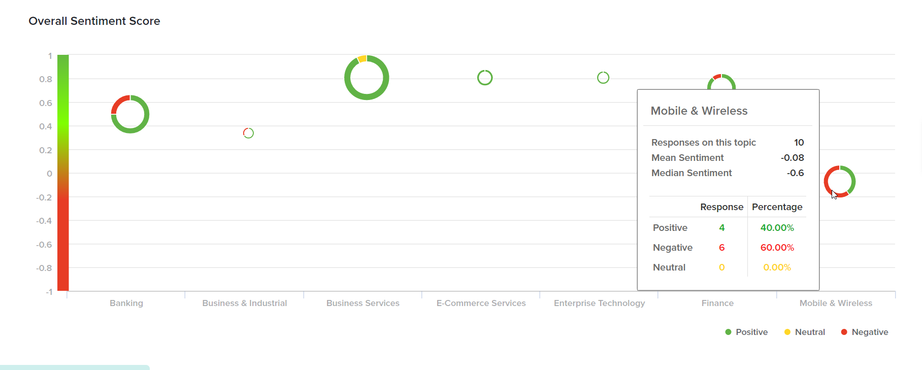 All responses will be categorized into topics. Hover over each donut to see more details like: