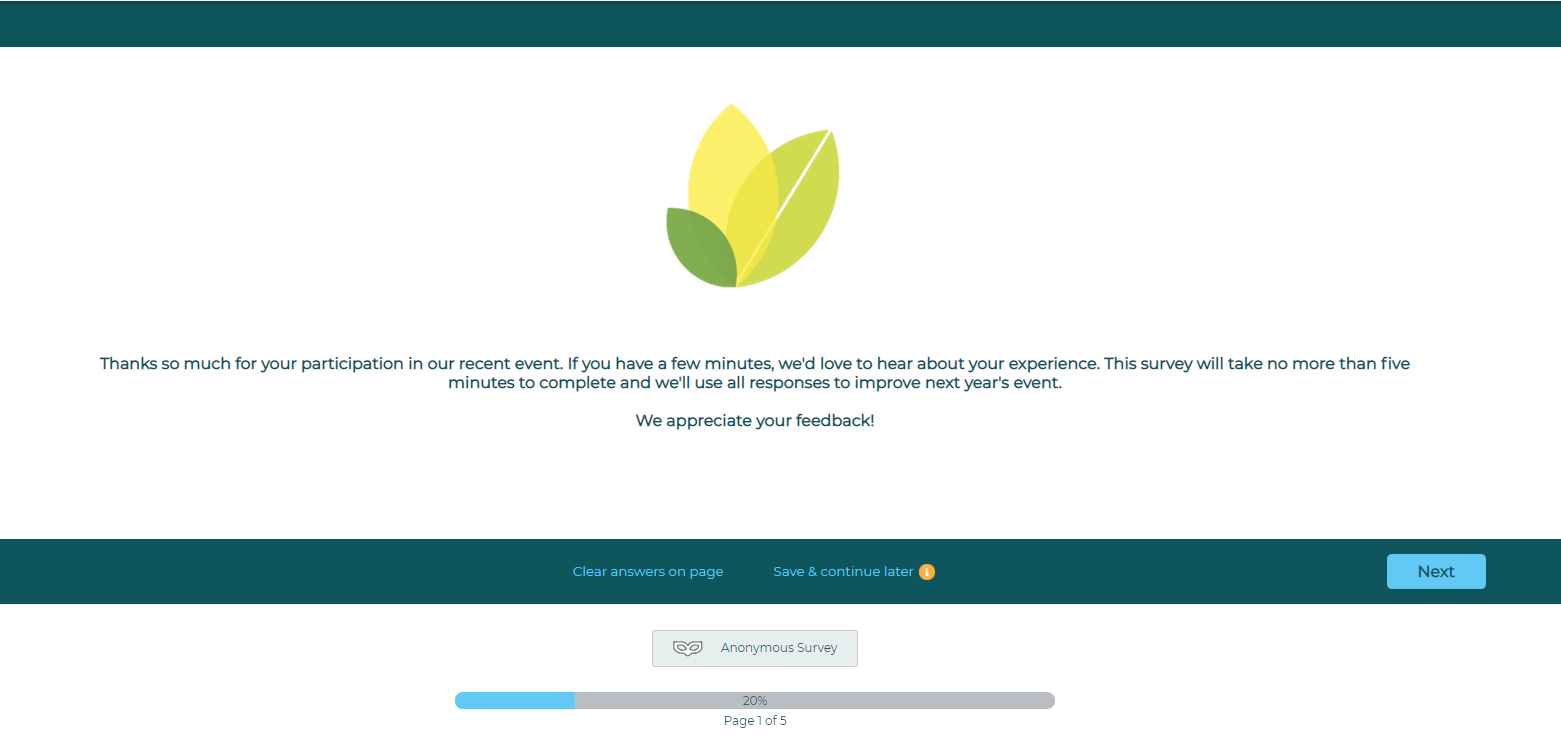 A Descriptive Text delivers helpful information, like an introductory note on the first page (Thanks for participating!) or instructions at the beginning of a certain section (The following questions focus on your most recent visit.). Remember: It’s not possible for your participant to “answer” a Descriptive Text. If you want to collect open-ended feedback from a participant, use a Text Box.