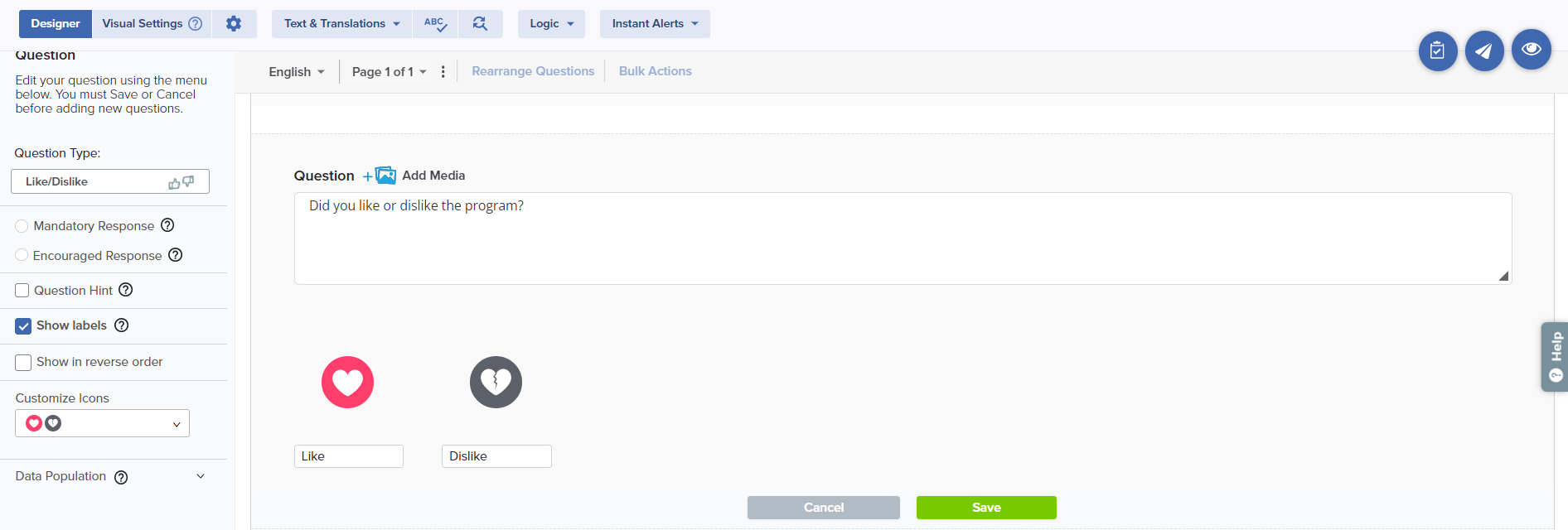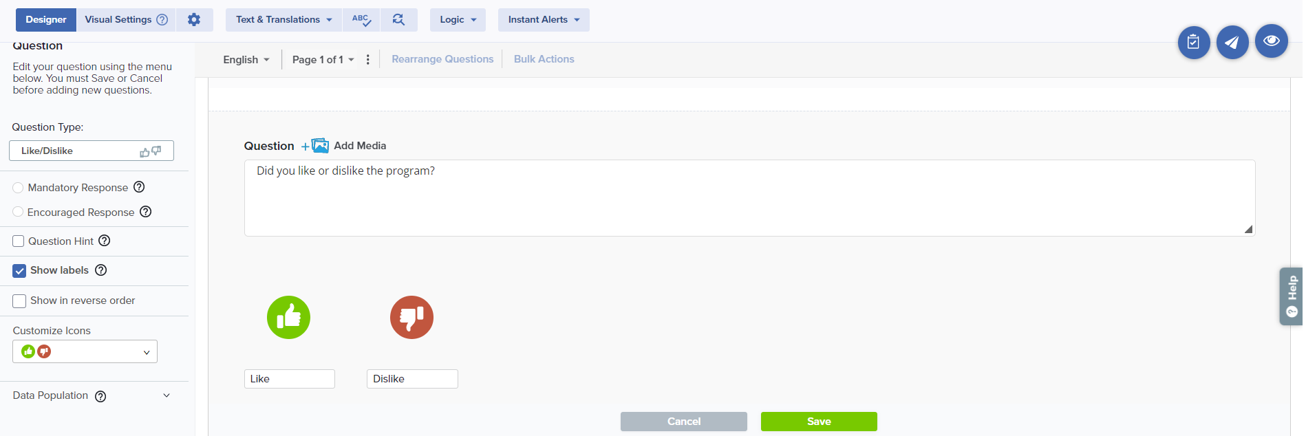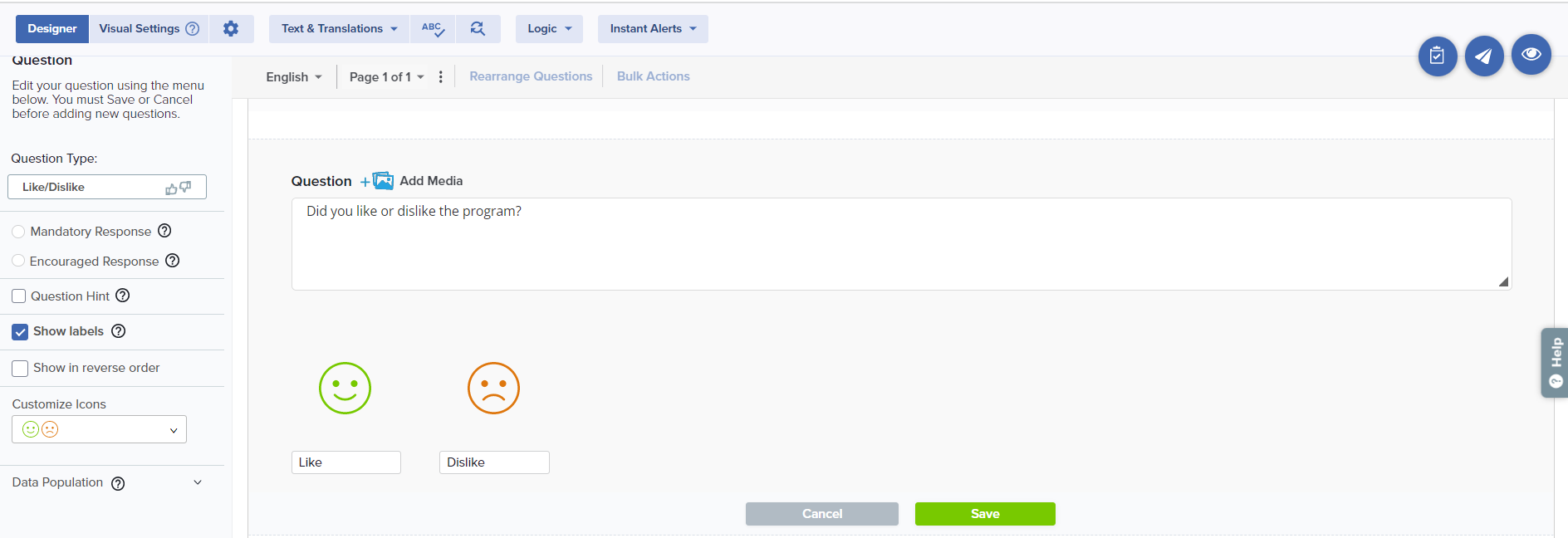 - Show Labels: Display the answer option labels that will be used in reporting.