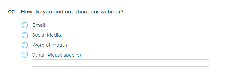 If it’s possible that participants might want to select an answer that’s not displayed, you may choose to add an ‘Other’ response and even edit the name of this field. Participants who select ‘Other’ will be shown a text field, which can be modified to your preferred width.