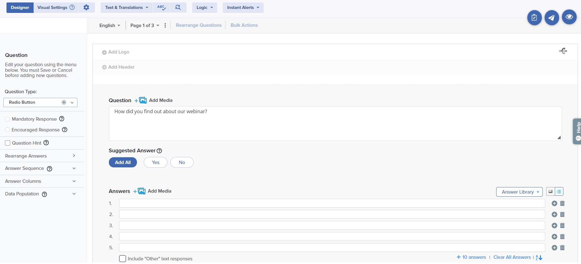 - Data Population: Pre-fill the response during distribution or post-fill after participation.