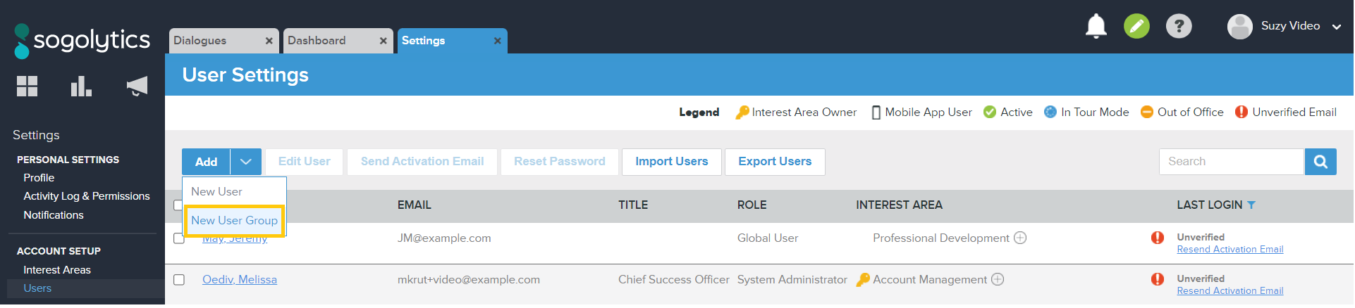- Name your User Group (Customer Service, Sales) by typing the name in the Enter User Group bar.