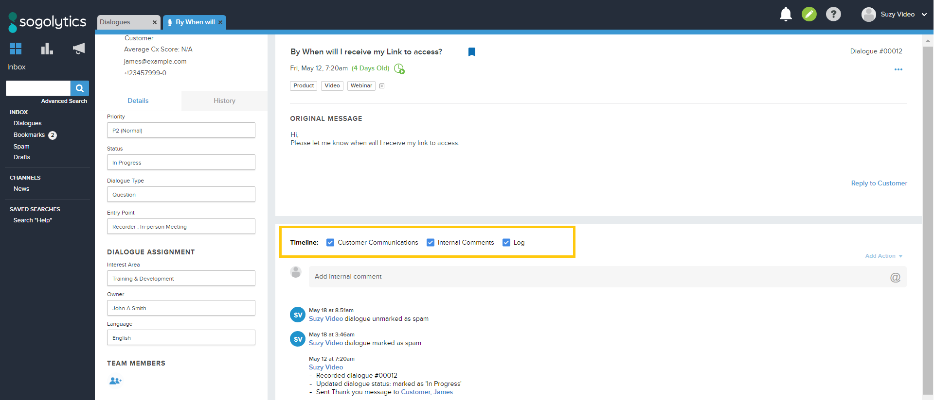 When trying to resolve an issue, you don’t need to keep the Customer in the loop with every little detail. If you need to get other colleagues or teams in the loop to resolve an issue, SoGoConnect’s Internal Comments are the place to get it done.
