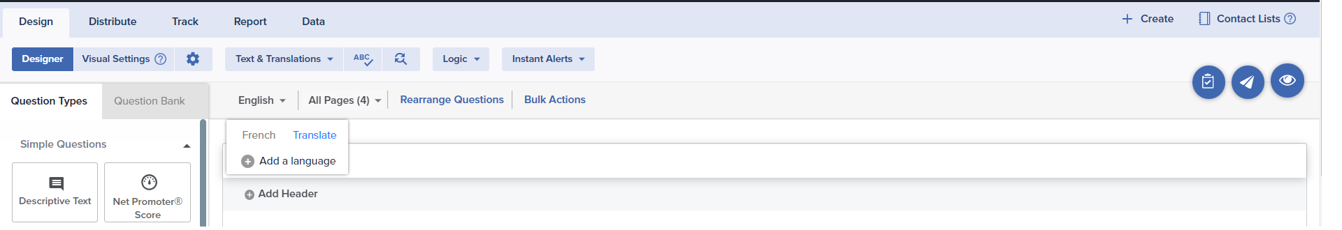 2. If you didn’t add a secondary language when you started building your survey, click ‘Add a language’ to add it now.