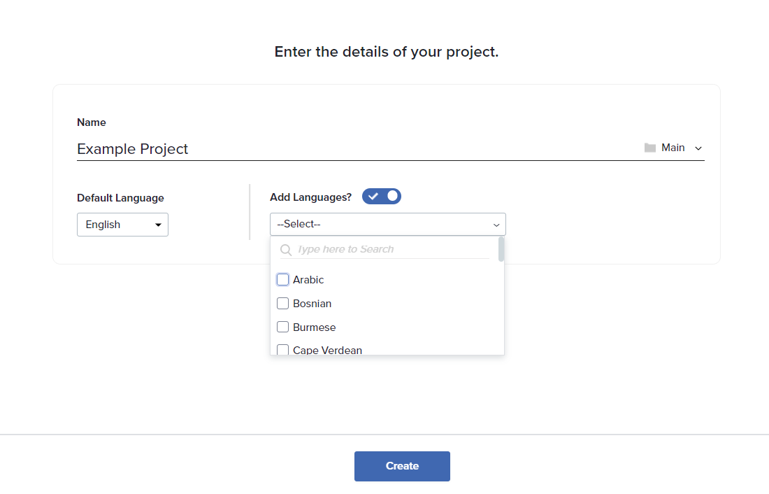 4. If you’d like to add more language options, enable Add Languages. You can add multiple languages here.
