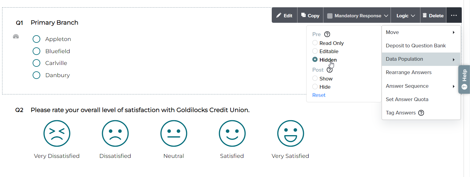 - Add a question that you’ll be able to use to differentiate responses, like location, department, or product type. (Remember that this might be a question you have to ask directly, but it could also be a question you can answer for your customer with Pre-Population!)