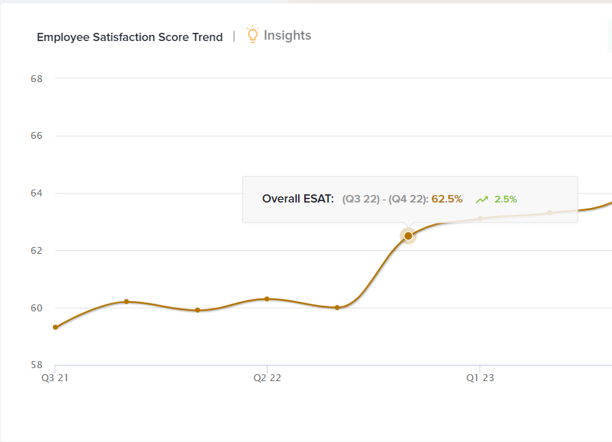 When the results start to come in, the team filters ESAT results by location in the EX Dashboard Overview tab.