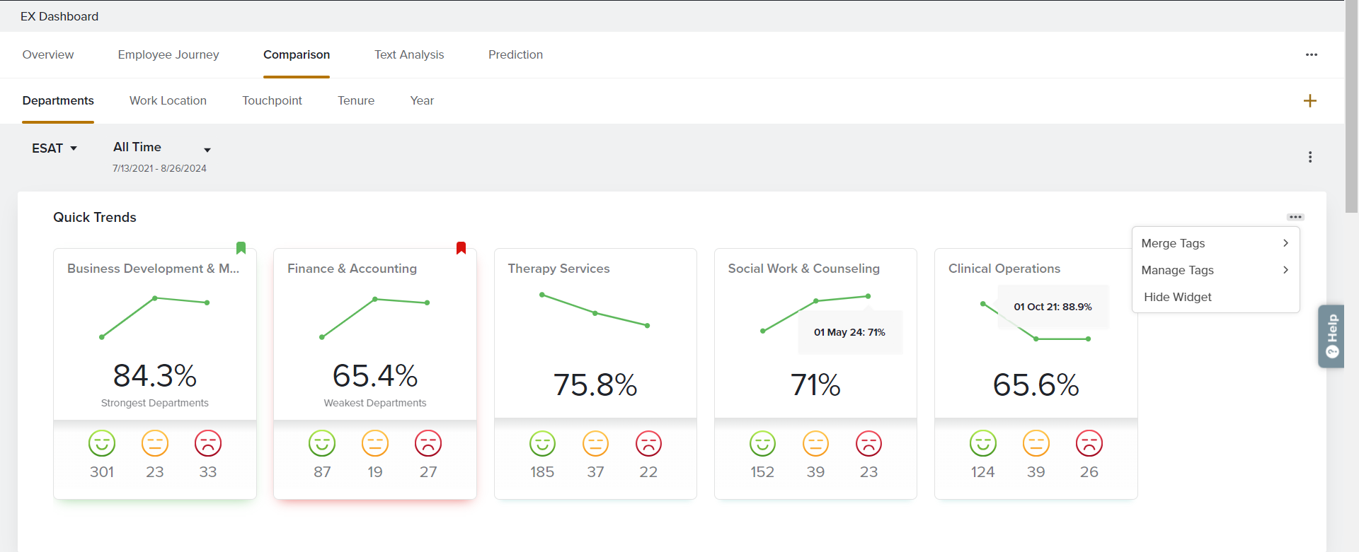 If you have multiple business locations and you’d like to better understand employees’ experiences at each site, use a response-level Tag for each answer in a location question. This will allow you to filter and segment responses by location across the EX Dashboard.
