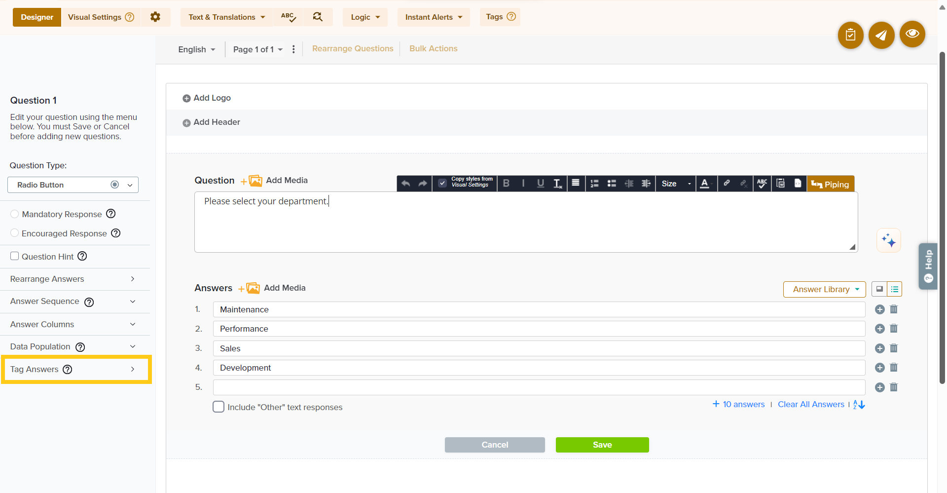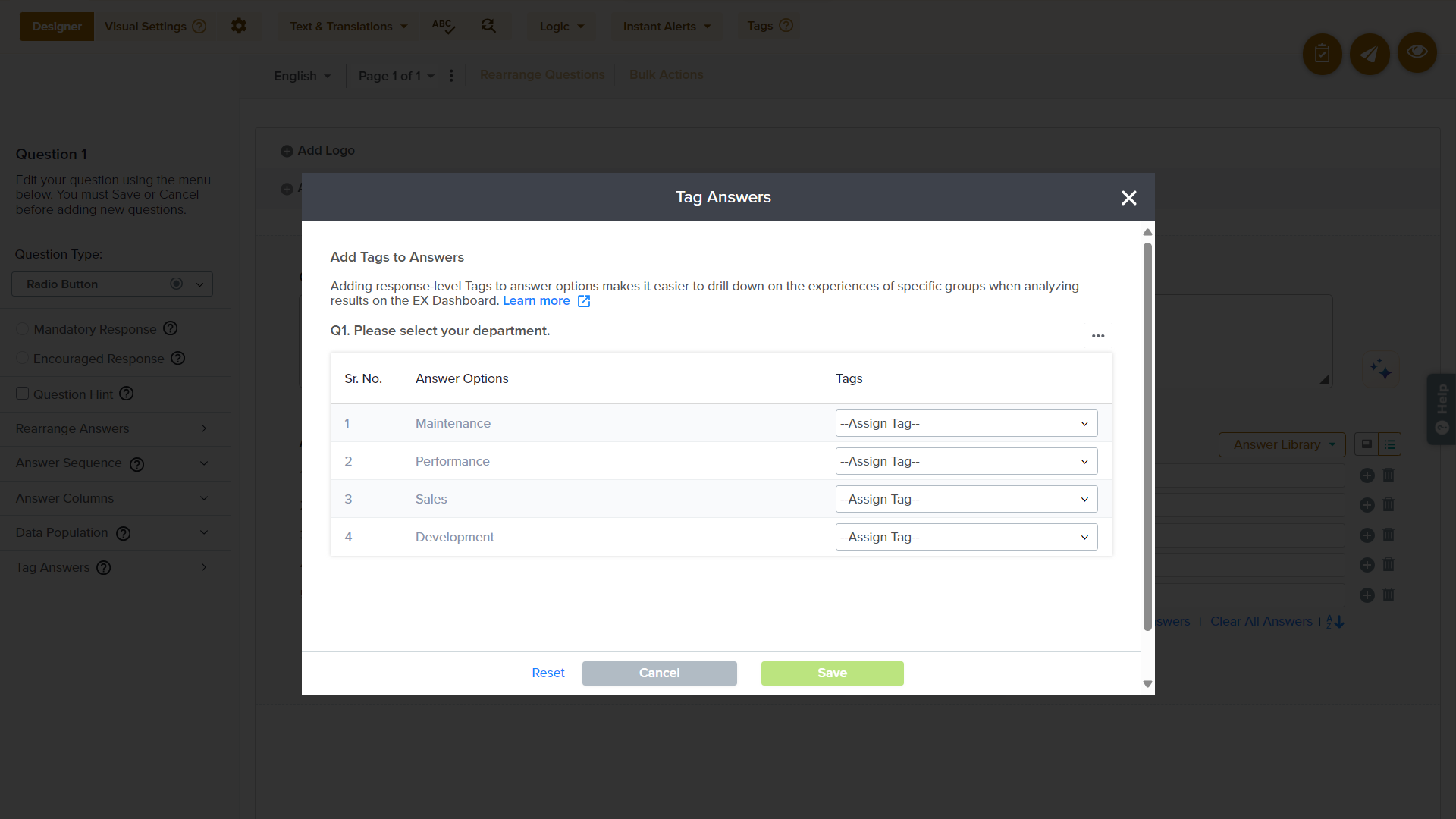 - You’ll see your answers listed in a pop-up box and you can add one Tag to each answer option.