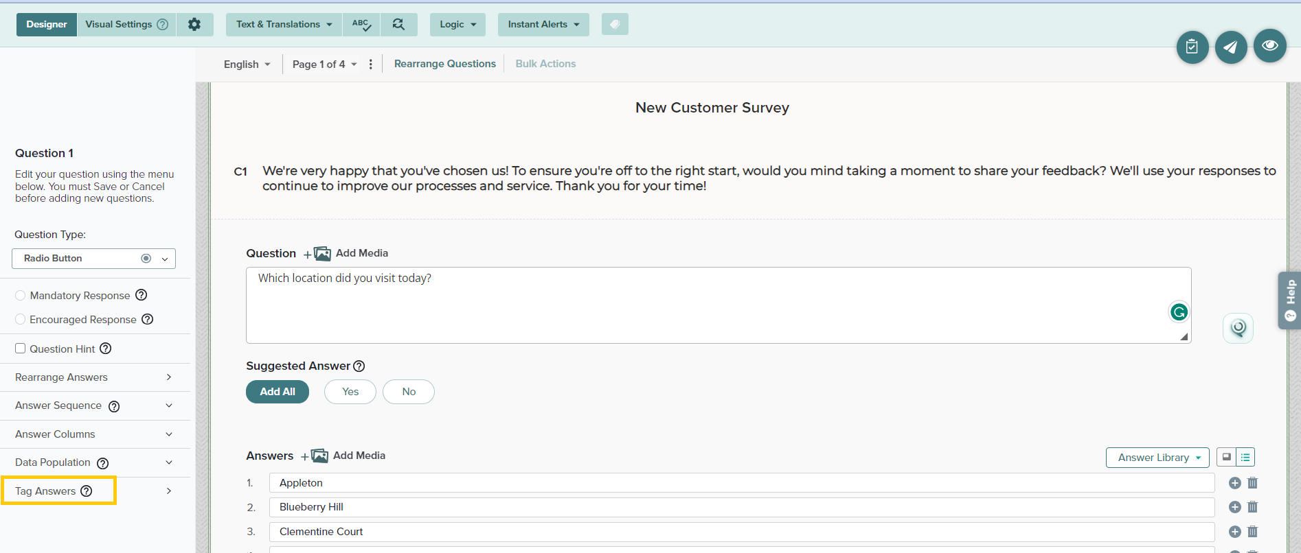 Adding Tags to Answer Options