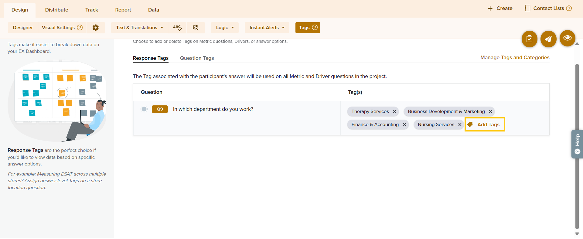 - Under Response Tags, view all questions with tagged answer options.