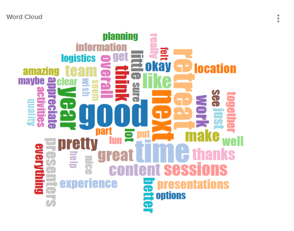 You’ll see a visual representation of text responses that highlight terms based on their frequency of use. Larger words indicate a higher frequency of use. Customize your word cloud by clicking on the three-dot icon.