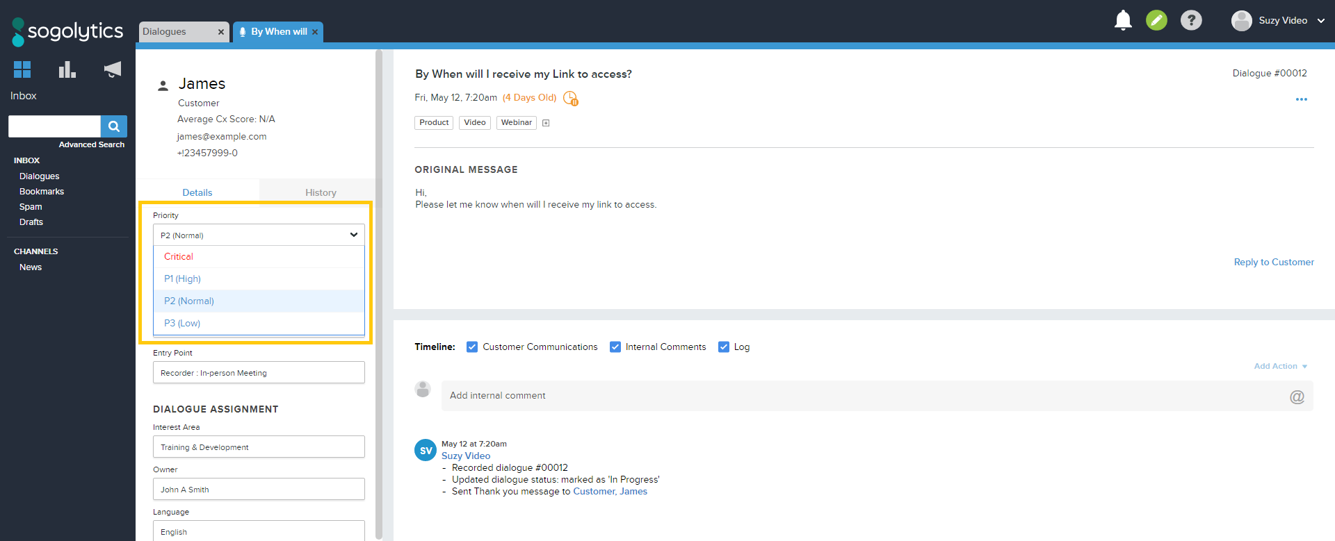 Dialogues can be assigned a Priority, so you know how fast your team needs to act. Let’s go over what each Priority in SoGoConnect represents.