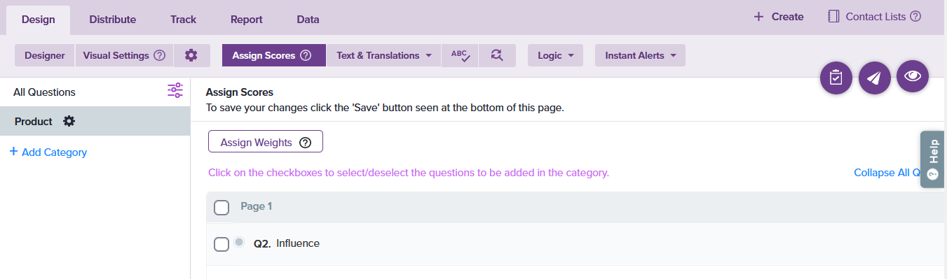 To get started, add all of the questions to your assessment, then move on to assigning scores and categorizing. Here’s how: