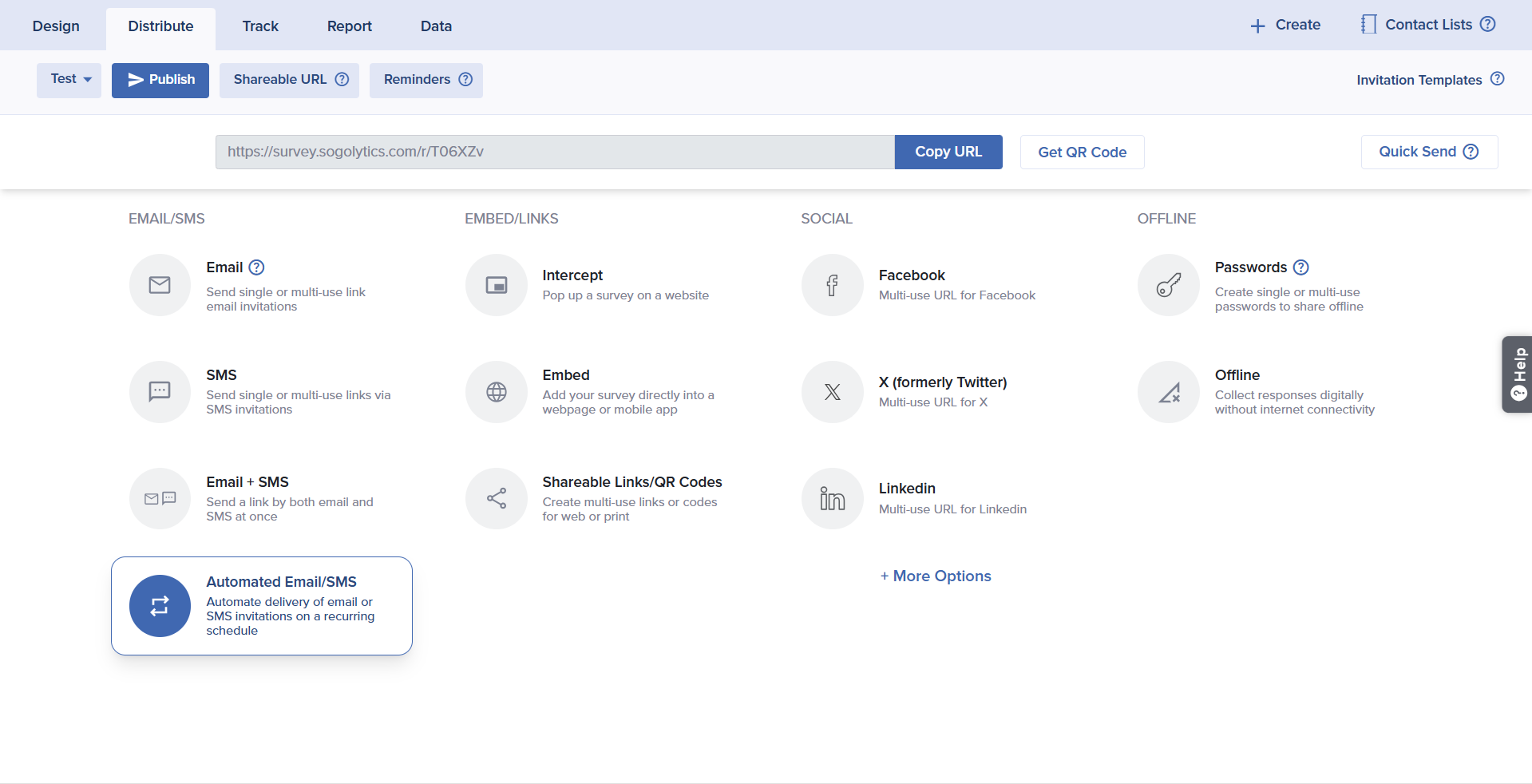 For Automated Distribution, Multi-Use Links can only be distributed via Email, not SMS or Email+SMS.