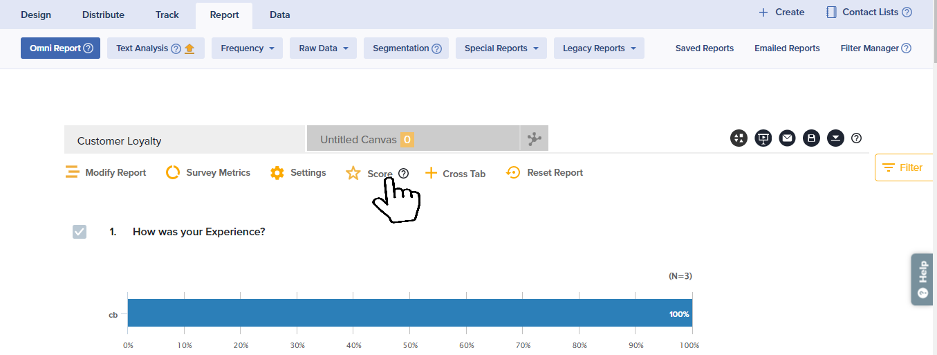 The Score option in Omni offers multiple ways to calculate the scores obtained on rating questions. While the term “score” is used here, this option is available in both survey and assessment projects. Score may be customized here as a Weighted Score, Percent Favorable, or Net Score.