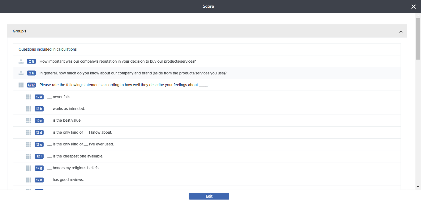 - View Contributing Questions: Display the questions included in the calculation and choose to add or remove any contributing questions.