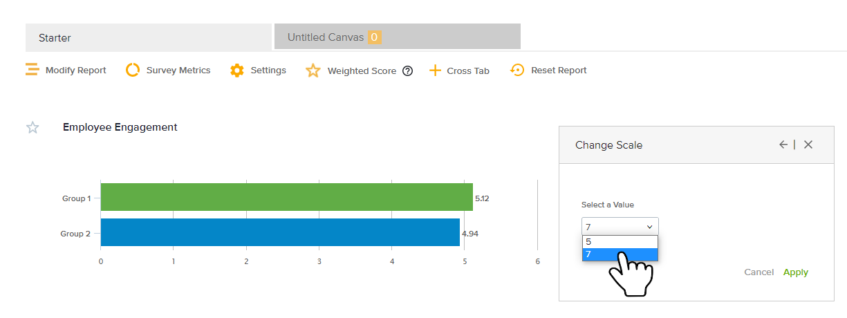 - Change Scale: If all rating questions use the same scale, the Change Scale drop down will be disabled.