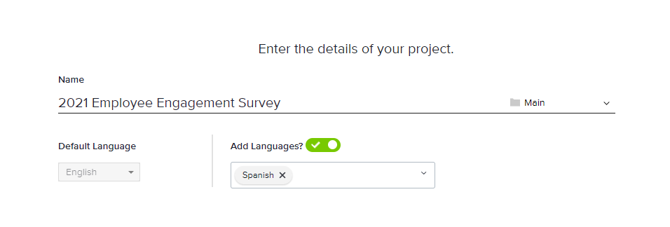 - Select your project’s default language and choose whether to add more languages.