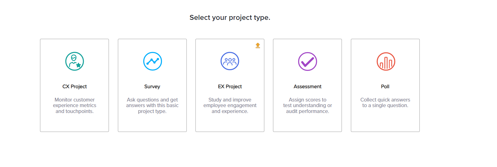 - Next, choose your project type. Based on your account type, your project options may include: