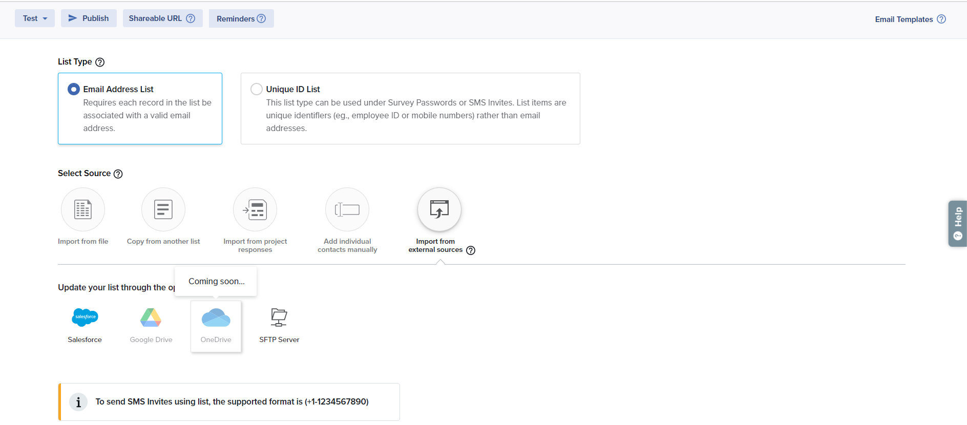 Is OneDrive your one-stop source for contact info? Excellent! Choose to connect OneDrive with your Sogolytics account and you can create dynamic Contact Lists based on the latest contacts in your Excel or CSV files. This option is great if you have evolving lists of employees or customers you’d like to collect feedback from – but you don’t want to spend time updating distribution lists manually!