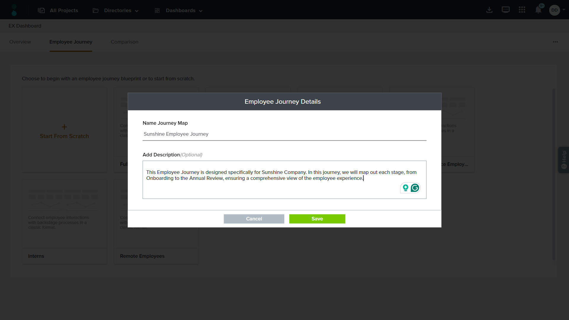 1. Once you’ve chosen your method to create a Employee Journey, provide the following details: