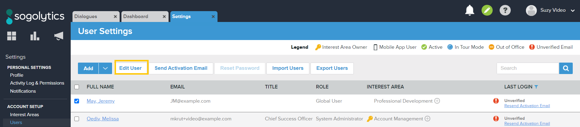 - Click the Edit button, make any necessary changes within the Edit User Information window, and click Save Changes.