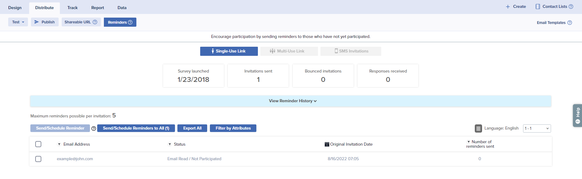 When you send out Single-Use Link email invitations or SMS invitations, you can send Intelligent Reminders to only those who have not yet participated.