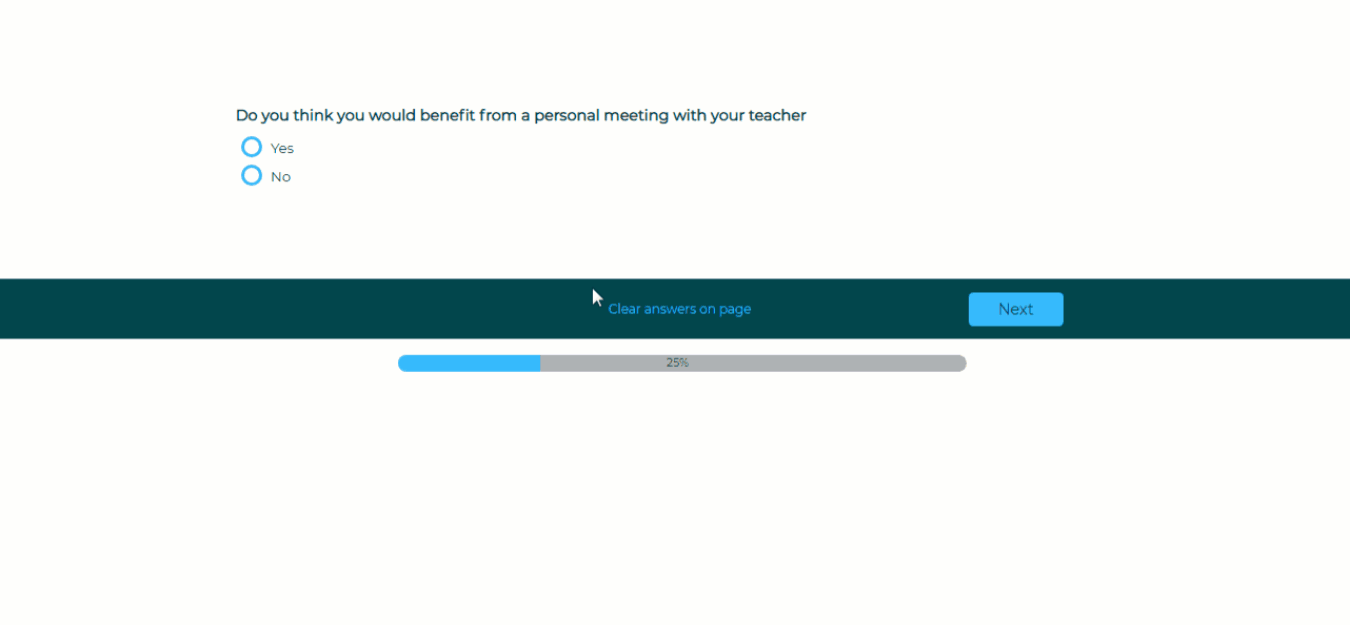 - A Text Box displayed inside a Radio Button or Check Box question will display based on the space available, not the width or height originally set.
