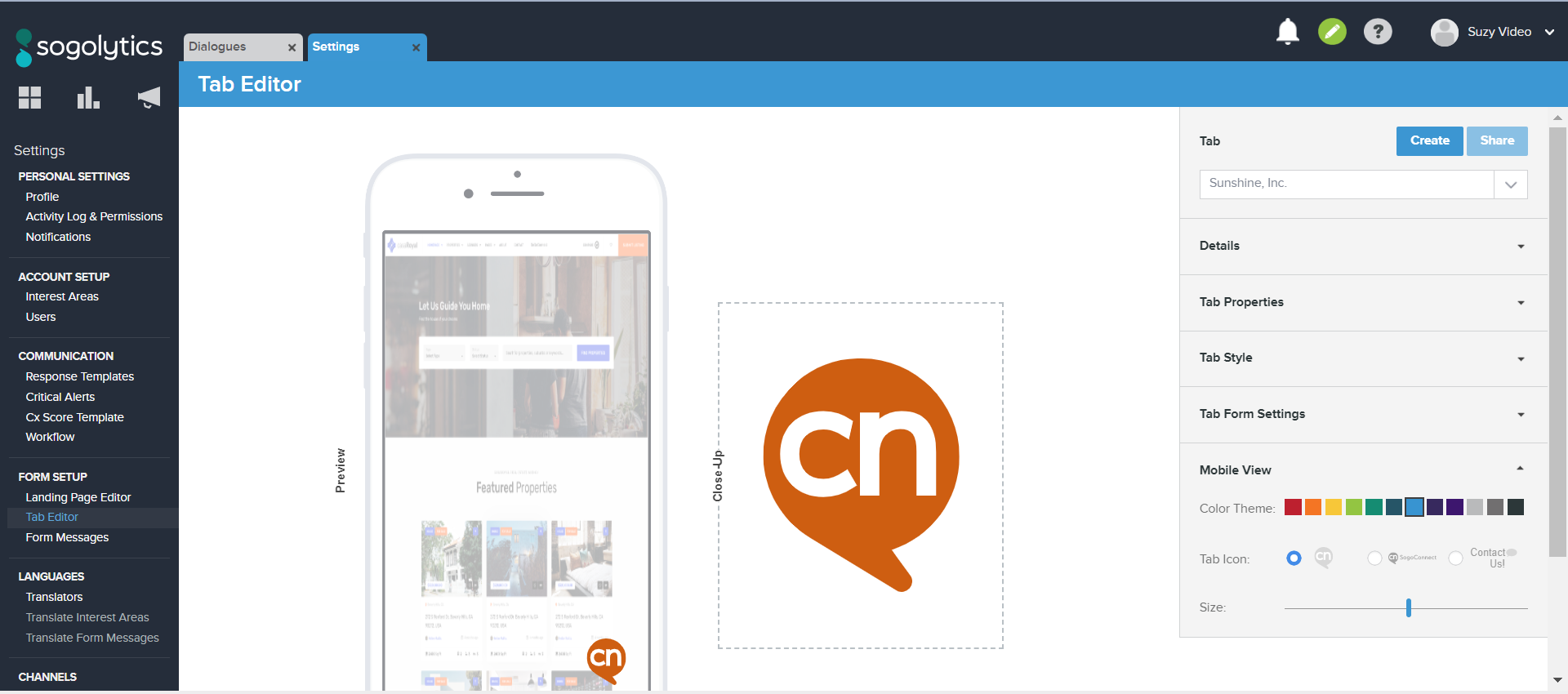 The SogoConnect Tab is easy to implement and gives your Customers easy access throughout your website. This Tab sits either on the side or bottom of your webpage and pops out when clicked, allowing the Customer to fill out a simple SogoConnect form and you to quickly gather feedback. By just copying and pasting a block of code once, the Tab can be easily implemented on all pages of your website.