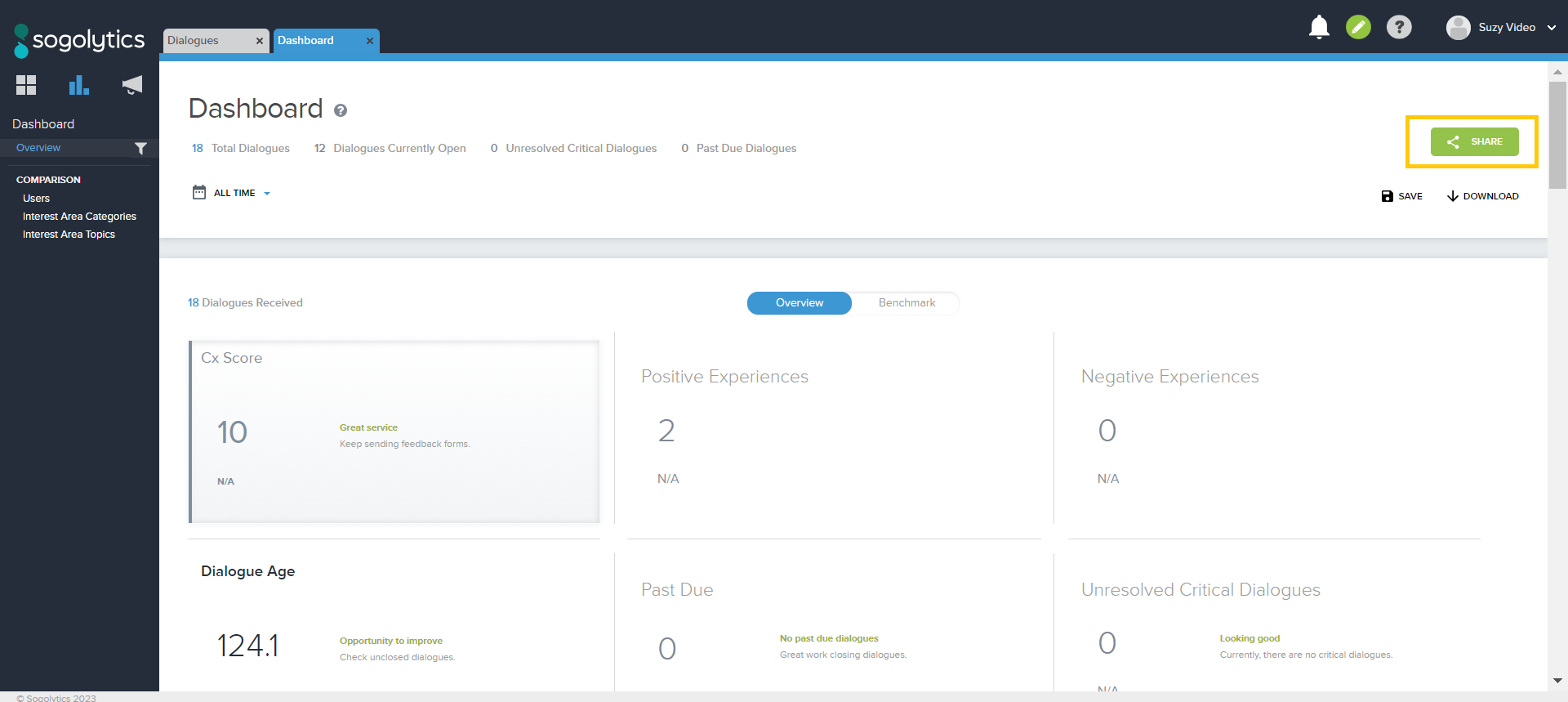 It’s easy to share the SogoConnect Dashboard to show people how you’re doing. Above the Save and Download options in the top right corner, you’ll see a bright green button that says “Share.”