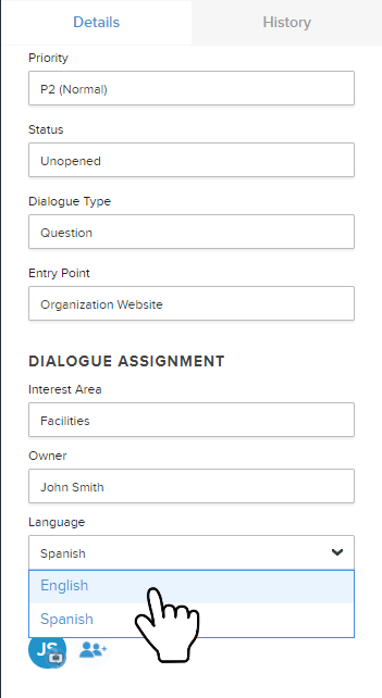 The convenience of auto-translation is now available for every Dialogue, regardless of entry point (including phone, text message, email, or online form). Simply select the language in Dialogue details to instantly translate the message.
